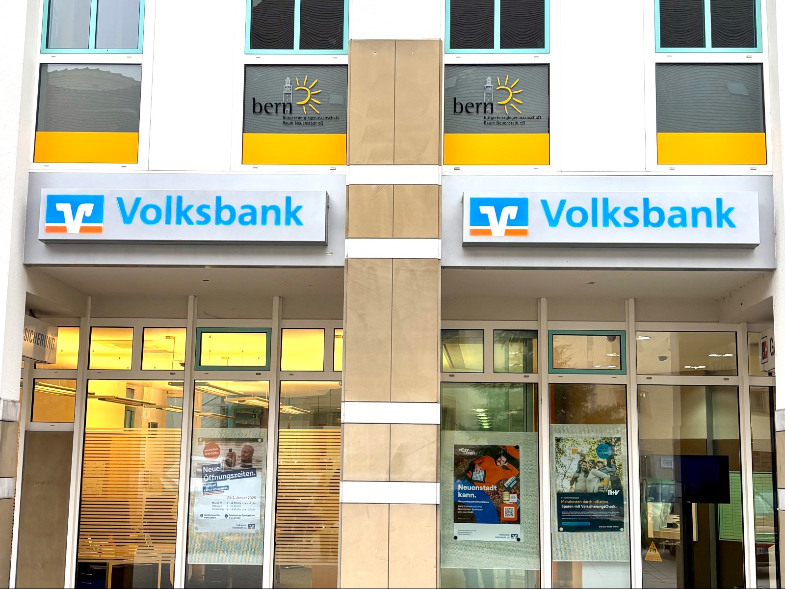 Die Geschäftsstelle der BERN ist ab dem 01. Januar 2025 in neuen Räumlichkeiten - und zwar Mitten im "Städle" von Neuenstadt, direkt am inneren Marktplatz. In den Geschäftsräumen der Volksbank Möckmühl eG hat sich im 1.OG eine tolle Möglichkeit ergeben, in ein etwas größeres Büro umzuziehen. Dadurch haben wir bessere Rahmenbedingungen fürs gemeinsame Arbeiten, Wirken und Gestalten.